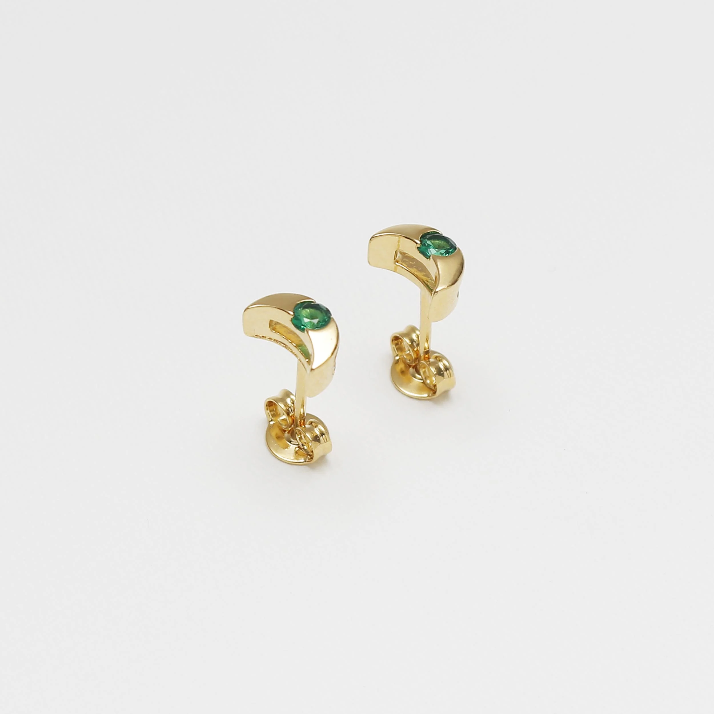 El Arete Luna Circonia está inspirado en la delicadeza de la noche y el poder sutil de la luna. Su forma curva en acabado de oro laminado de 18k abraza una circonia brillante, que refleja luz con cada movimiento.