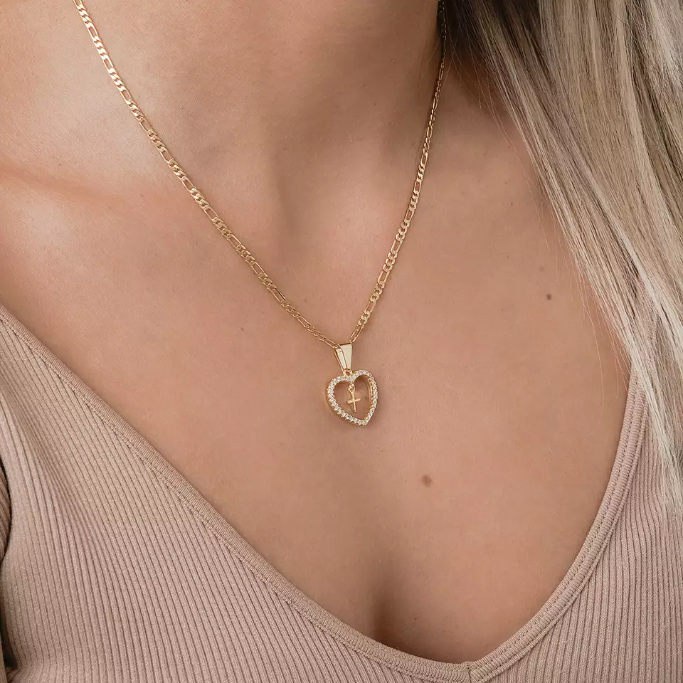El Dije Corazón + Cruz Mini en oro laminado 18K con circonias cristal es el reflejo perfecto de espiritualidad y elegancia. Un detalle delicado que expresa devoción y amor eterno. ¡Llévalo siempre contigo! 🙏✨