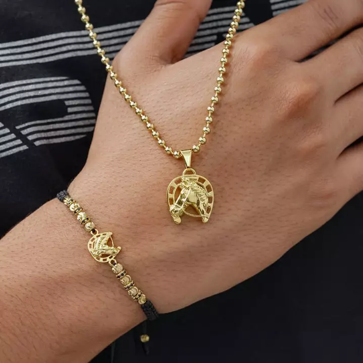 El Dije Herradura y Caballo Fortune en oro laminado 18K es una joya cargada de significado. La herradura es un reconocido símbolo de protección y buena suerte, mientras que el caballo representa la fuerza, la libertad y el éxito. Juntos, forman un amuleto poderoso para atraer energías positivas y lograr grandes metas.